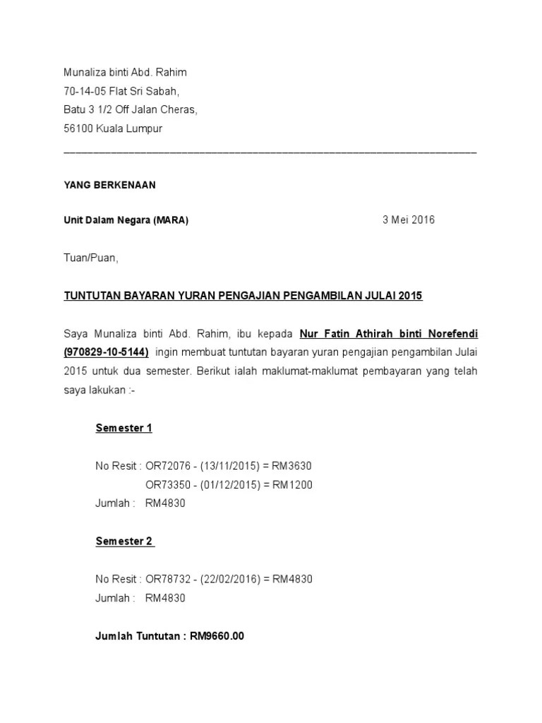 Contoh surat rasmi tuntutan bayaran rasmi ri.